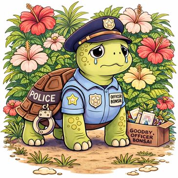 Now officially a part of our department, Officer Bonsai takes her duties seriously. She patrols under desks, keeps a close eye on workplace shenanigans, and makes sure everything is running… slowly but smoothly. Her favorite pastimes include basking in sunny spots and taste-testing leafy greens.